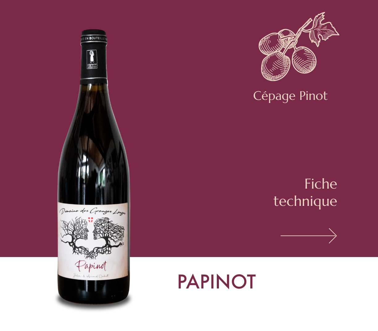 Cépage célèbre de la Bourgogne, il donne des vins légers avec une texture veloutée. Dans notre région, il offre des vins de garde moyenne. On retrouve dans son bouquet les fruits noirs, les sous-bois, les épices douces soutenues par son coté fondu avec des tanins délicats et soyeux.